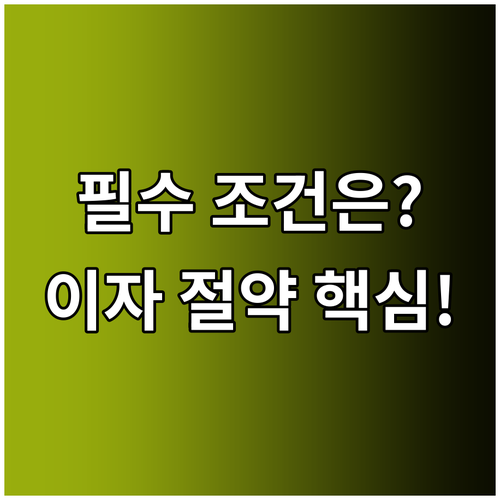 1. 정책자금 대출 상품인 경우: 버팀목, 디딤돌 등 이미 국가 및 지방자치단체의 지원을 받는 상품은 대상이 아닙니다.